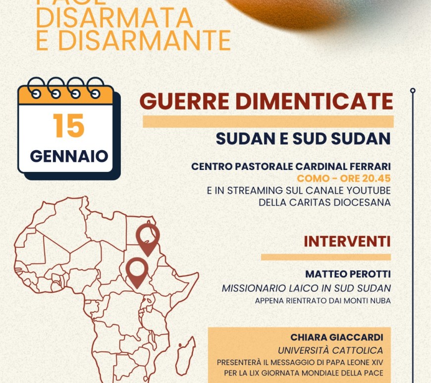 La Caritas diocesana di Como promuove, in occasione del Mese della Pace, un ciclo di “Incontri per una pace disarmata e disarmante”, dedicato alle guerre dimenticate.
