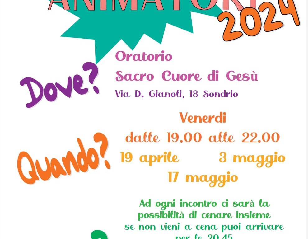 Il Vicariato di Sondrio organizza, anche in vista dei Grest, un corso animatori a cui parteciperanno anche molti ragazzi del Vicariato di Tresivio. Il corso si svolgerà in tre incontri (19 aprile, 3 maggio, 17 maggio) presso l’oratorio Sacro Cuore a Sondrio.
