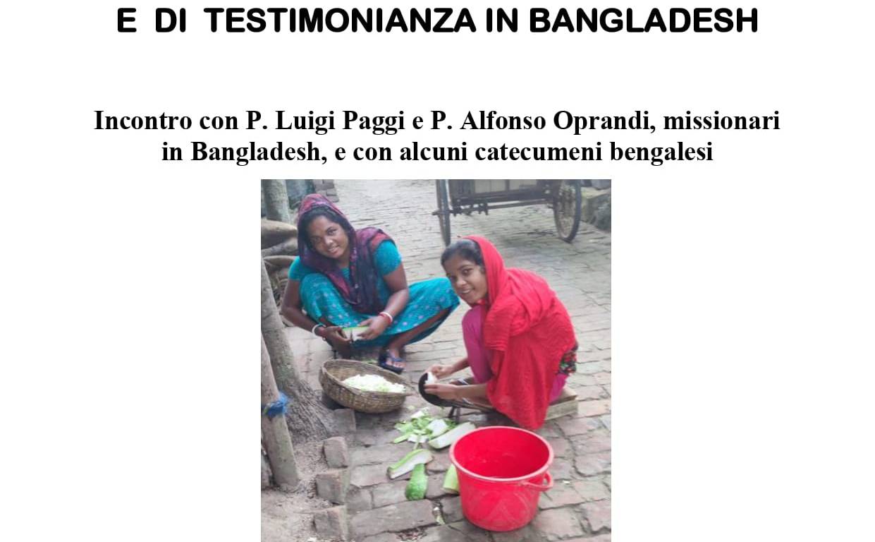 L’associazione Solidarietà terzo mondo, le Parrocchie di Sondrio e il Vicariato di Tresivio propongono l’incontro con P. Luigi Paggi e P. Alfonso Oprandi, missionari in Bangladesh, e con alcuni catecumeni bengalesi. L’appuntamento è per martedì 16 settembre alle ore 20.30, presso la sala parrocchiale B.V. del Rosario a Sondrio.