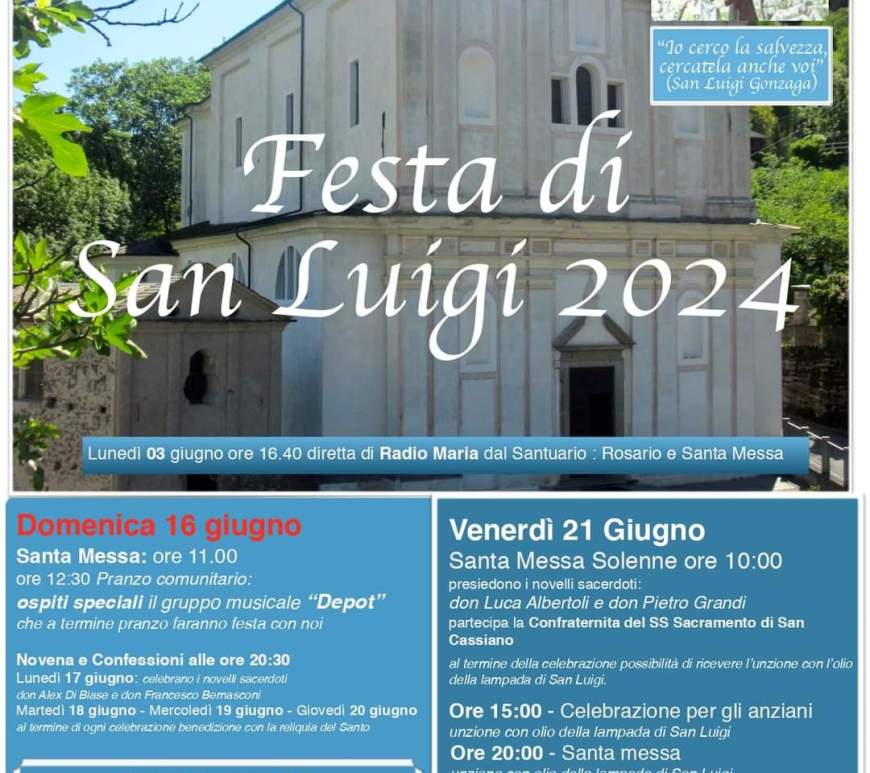 Riportiamo la locandina della festa di San Luigi Gonzaga 2024 che si terrà a Sazzo di Ponte in Valtellina dove sorge il Santuario dedicato al santo.